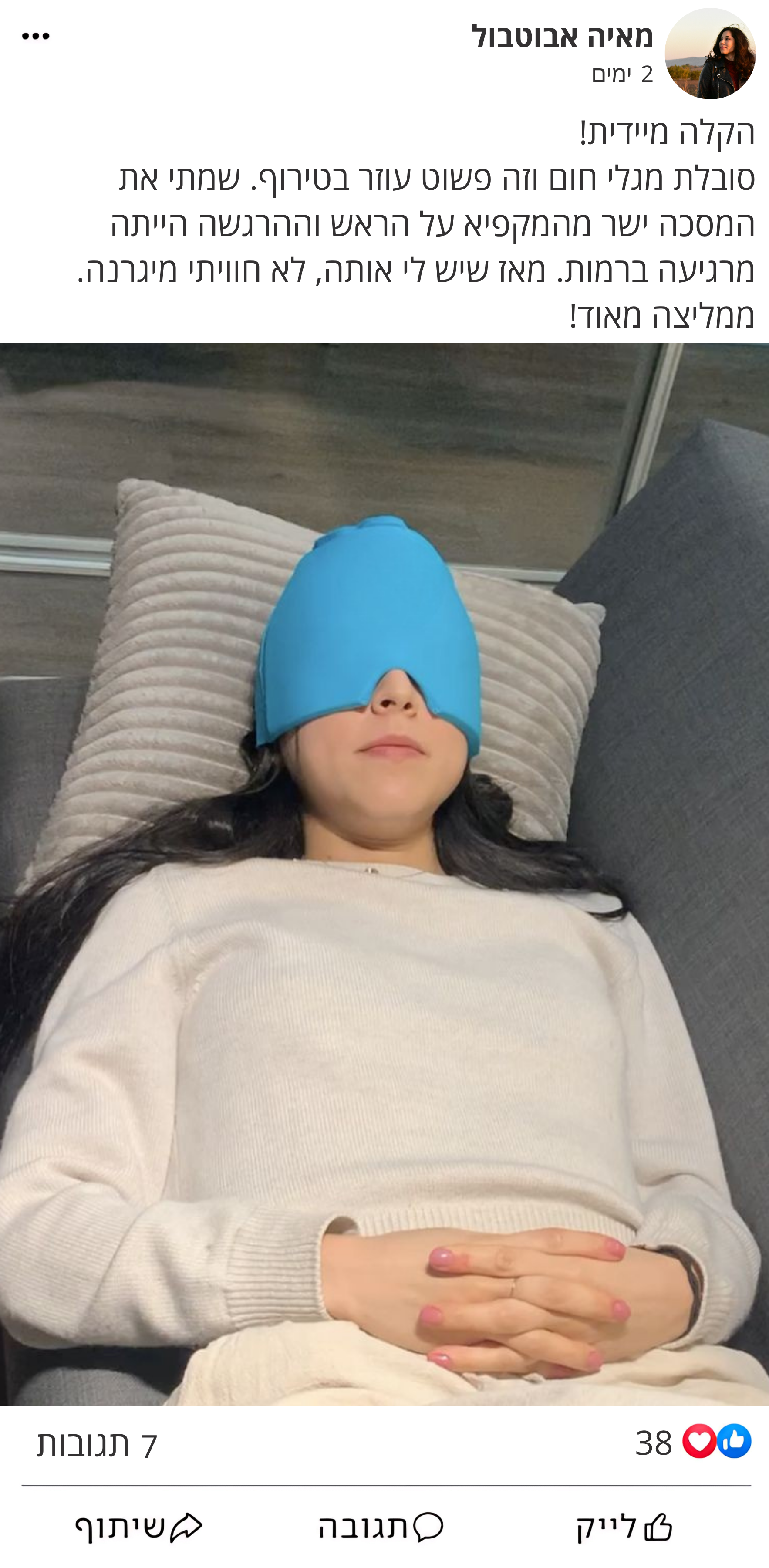 אחרי מחקרים רבים, פיתחנו מסכה שתתן אפקט של קירור או של חימום ולחץ עדין שתתאים לכל מבנה ראש. התוצאה - הקלה מידית על הכאבים.