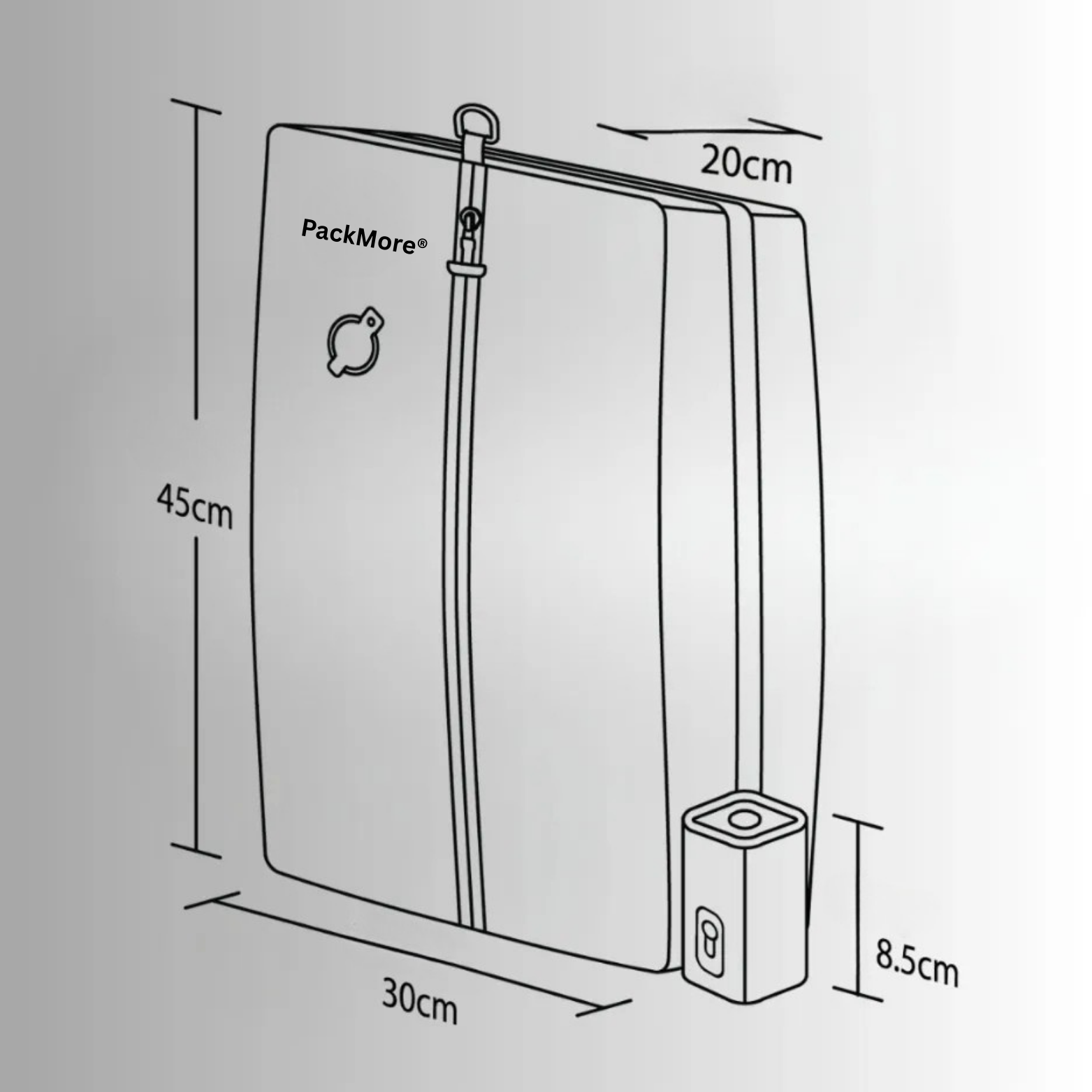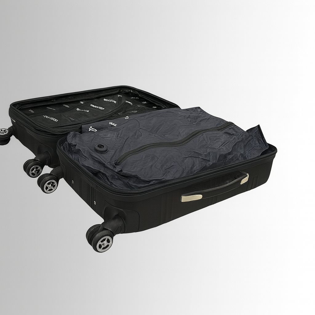 תיק חכם שדוחס את הבגדים שלכם בשניות, חוסך עד 60% מקום ומתאים לכל סוג מזוודה או תיק נסיעה.