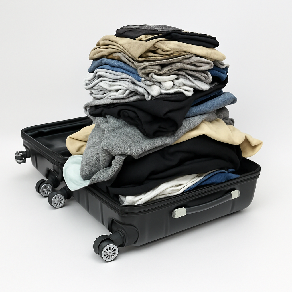 התיק מתאים לכ־15 פריטי לבוש, שזה בדרך כלל מספיק ל־10 ימי נסיעה.